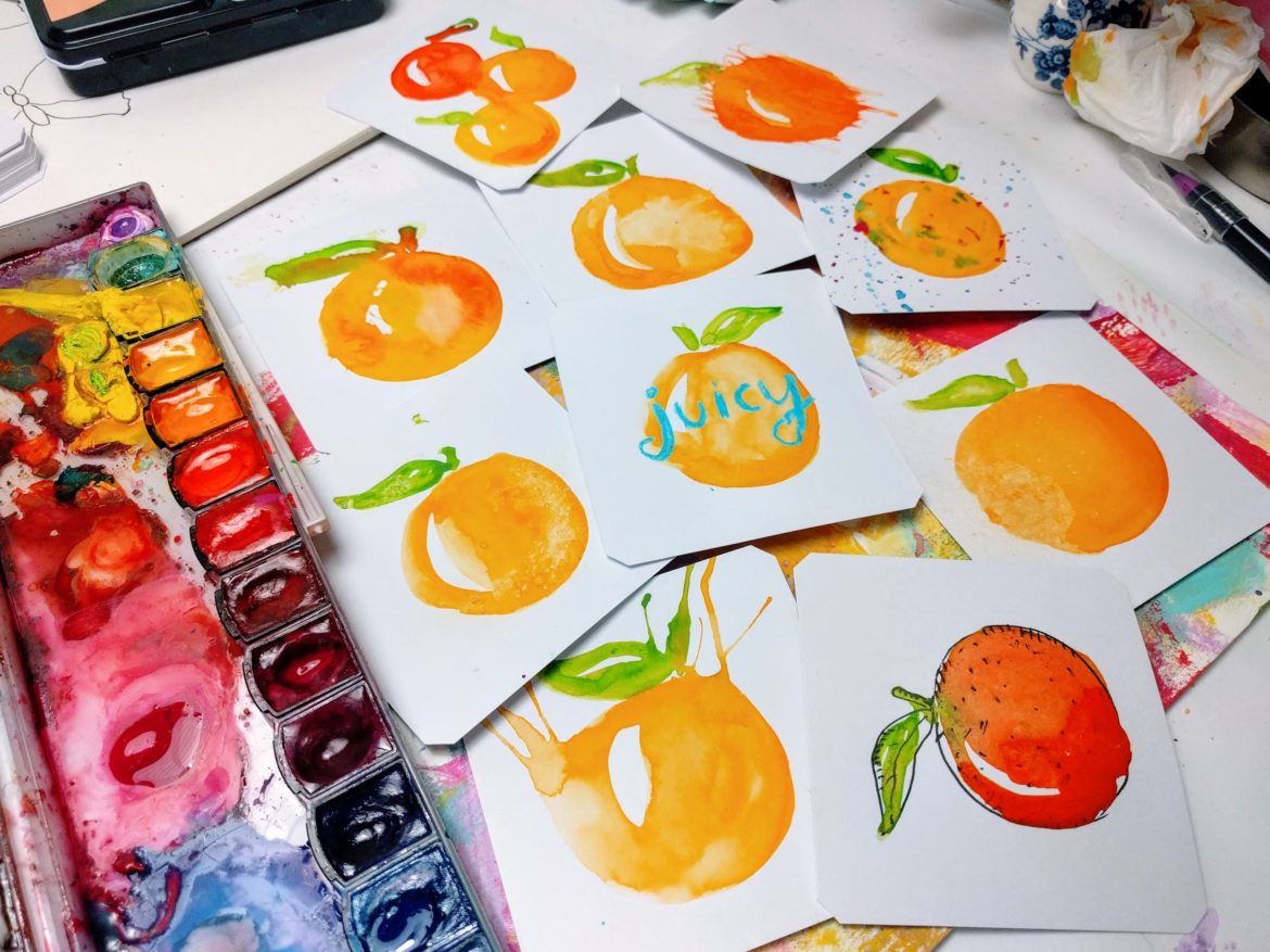 Want to see how I made the sketches above? Watch the video below for additional tips on how to paint an orange in 9 different ways with various watercolor techniques!